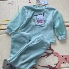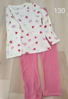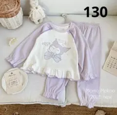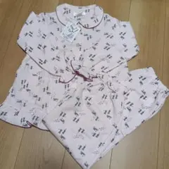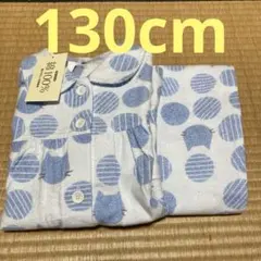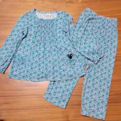 可愛いキャラクター刺繍のチェック柄パジャマ、130サイズ、コットン混合素材。