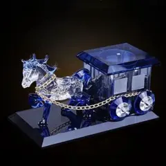 青色ガラス製馬と車の...