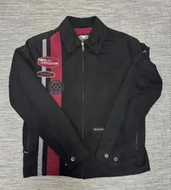 オレンジとブラックのストライプデザインのジップアップジャケット。フロントにHARLEY DAVIDSONのロゴ、バックにTWIN CITIESのロゴあり。