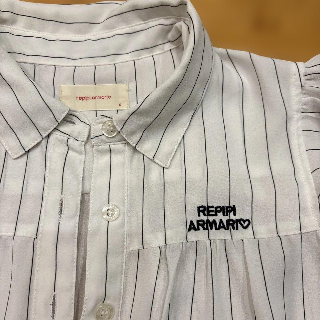 repipi armario フリル袖ストライプシャツ