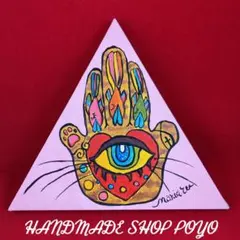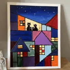 こちらは約10cm×10cm×0.6cmのMDF合板にアクリル絵の具で描いたオリジナルの作品となります。