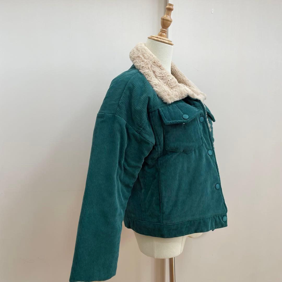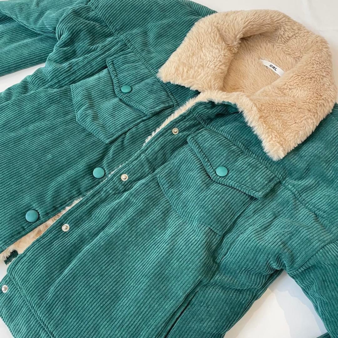 美品 グレイルG R L 裏ボアファーコーデュロイブルゾン(F)グリーンもこもこ