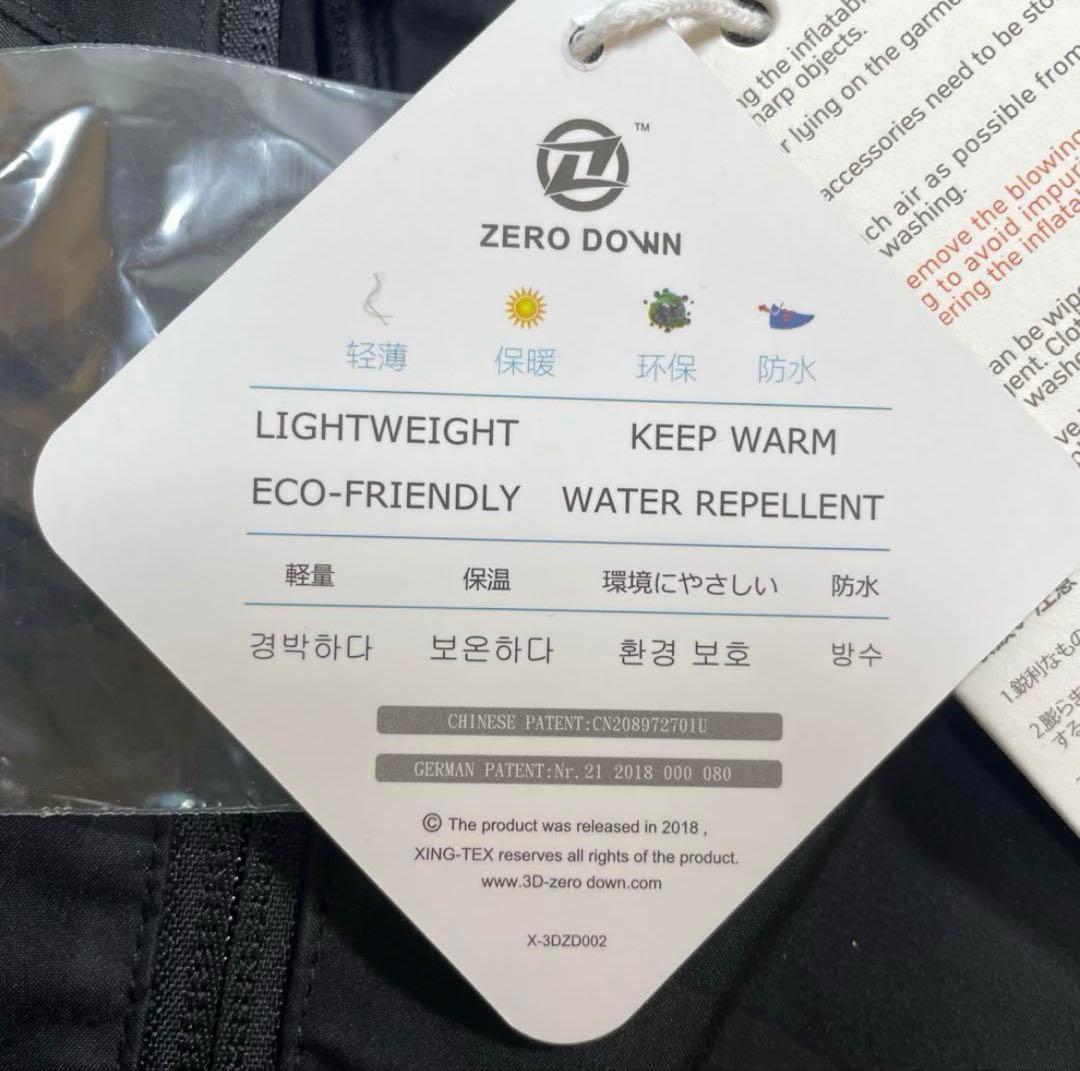 ・衣服構造が風をジャットアウトし、低熱伝導率静的空気層、冷気を遮断して体内の熱を閉じ込める。