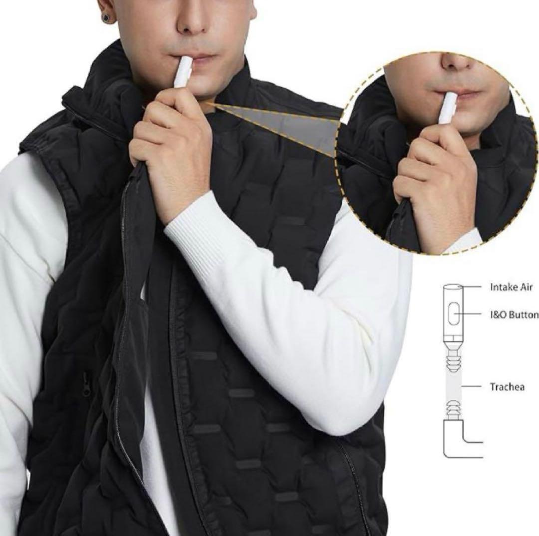 ・ネックラインにはチューブが内蔵されており、気温に応じて衣服内の空気量をいつでも調節できる。 空気ポンプを持ち歩く必要はない。