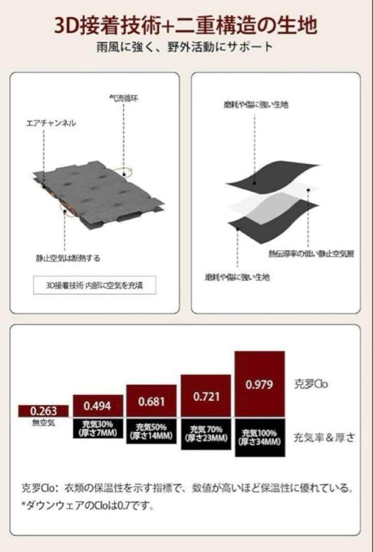 ・-5℃~20℃野外活動の温度差に対応、空気量調整による温度を調節できます。朝のランニング、アウトドア・ハイキング、釣りなどに適している。