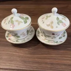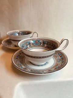 ウェッジウッド ユーランダー パウダーブルー ティーカップ&ソーサー【ピオニー】2客