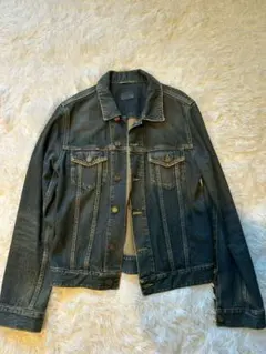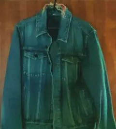 グラデーションカラーのデニムジャケット、ビジュー装飾付きで個性的なデザイン。