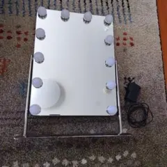 LED照明付きの円形卓上ミラー、イエローのスタンドでスタイリッシュ。