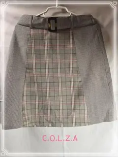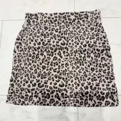 ヒョウ柄デザインのタイトスカート、Mサイズ、ポリエステル製、ベルト付き。