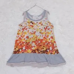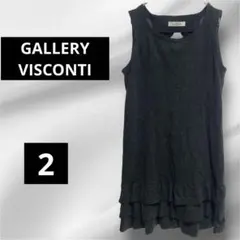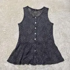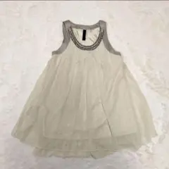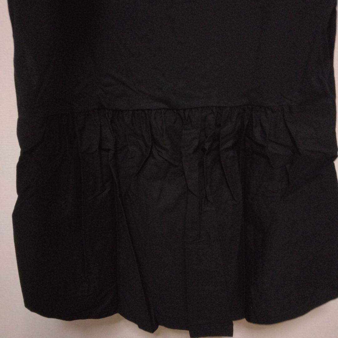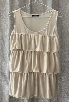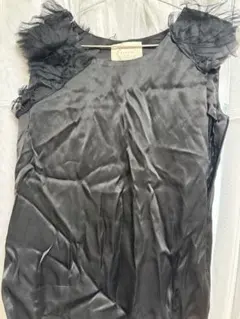 ウエストにギャザーが施されたブラックのノースリーブチュニック。