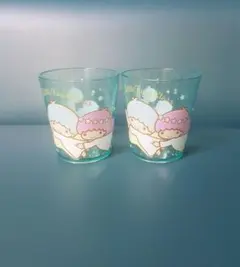 ハローキティとバニーのデザインが施された青色のグラス2個セット。