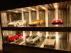 1/64 スケールのミニカー(ポルシェ・ホットウィール・トミカなど)に最適なカーショールーム型ジオラマです。