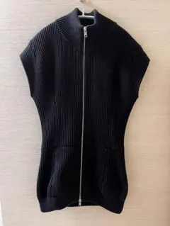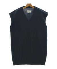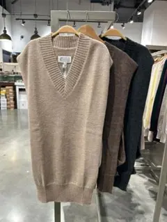 ウール混紡のグレーVネックニットベスト、リブ編みの裾が特徴。