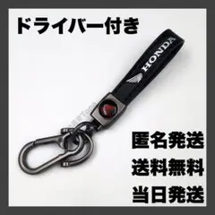 HONDAのカーボンファイバー風キーホルダー、スナップボタン付きで便利。