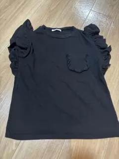フリルデザインの黒いノースリーブトップス、コットン素材で快適な着心地。