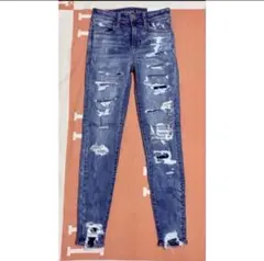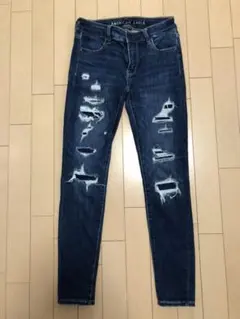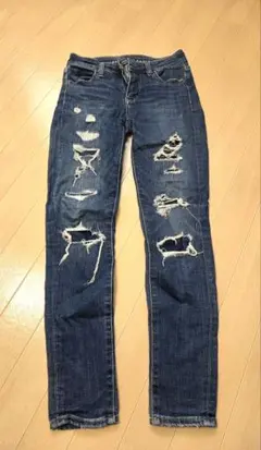 ダメージ加工が特徴のスキニーデニム、アメリカンイーグルの2サイズ(日本だとSサイズ相当)