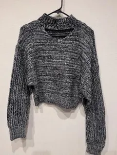 シアーパフスリーブリブニットプルオーバー