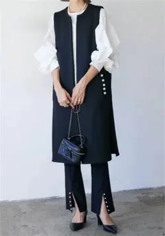 ロングベスト パールつき ポケットつき