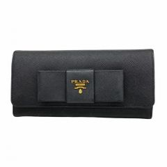 PRADA プラダ 長財布 ロングウォレット ラウンドファスナー ジッピーウォレット コインケース 小銭入れ カードケース カード入れ 名刺入れ 定期入れ サフィアーノレザー ロゴ金具 フラワー 花柄 総柄 ブラック 黒 ロゴ金具 メンズ レディース ユニセックス
