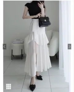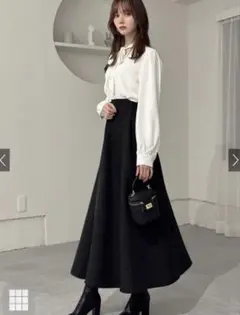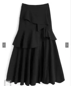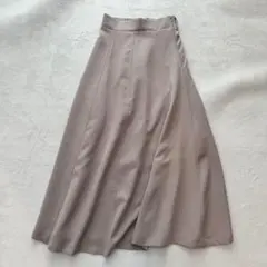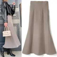 落ち着いたダークブラウンカラーで、斜めの切り替えデザインがアクセントになった一着です。腰まわりはすっきりとしたシルエットで、裾に向かって広がるマーメイドラインが女性らしい印象を引き立てます。ウエストはゴム仕様で着脱しやすく、トップスをインしてもバランスよくまとまります。秋冬を中心に、普段使いからお出かけまで幅広く活躍するアイテムです。