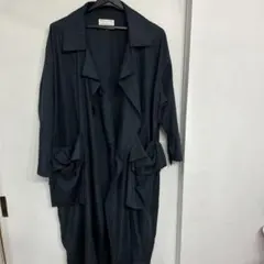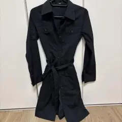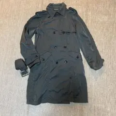 シンプルでエレガントなブラックのトレンチコート、バーガンディの裏地が特徴。