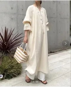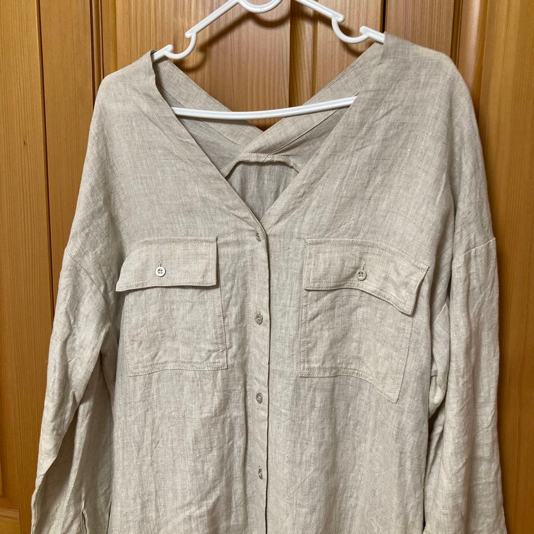 ジェナエスパスメルヴェイユのリネンダブルVワンピースになります。