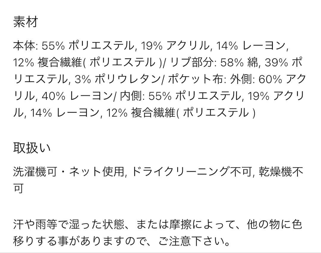 - 素材: ポリエステル55%, ウール19%, アクリル14%, その他12% (HEATTECH)