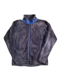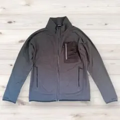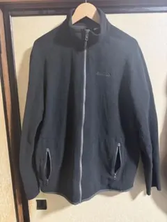 オレンジのポリエステル製、ハーフジップデザインのフリースジャケット。