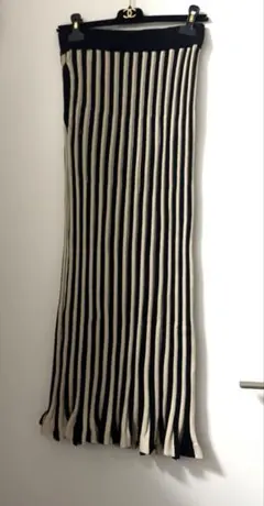 繊細なプリーツと大胆な配色ラインが生み出す、洗練されたラインスカート。