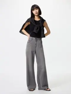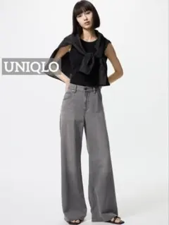UNIQLO ユニクロ ドレープワイドフレアジーンズ GRAY 24