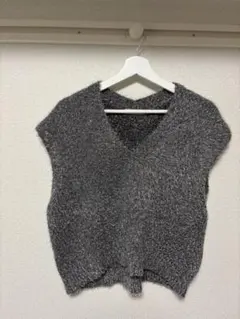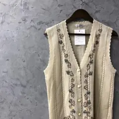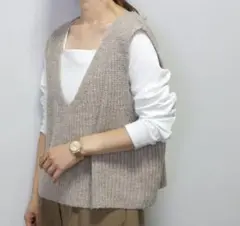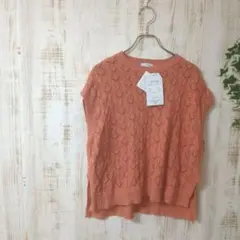 【美品】LUEUF赤 ケーブル編み ノースリーブニットベスト