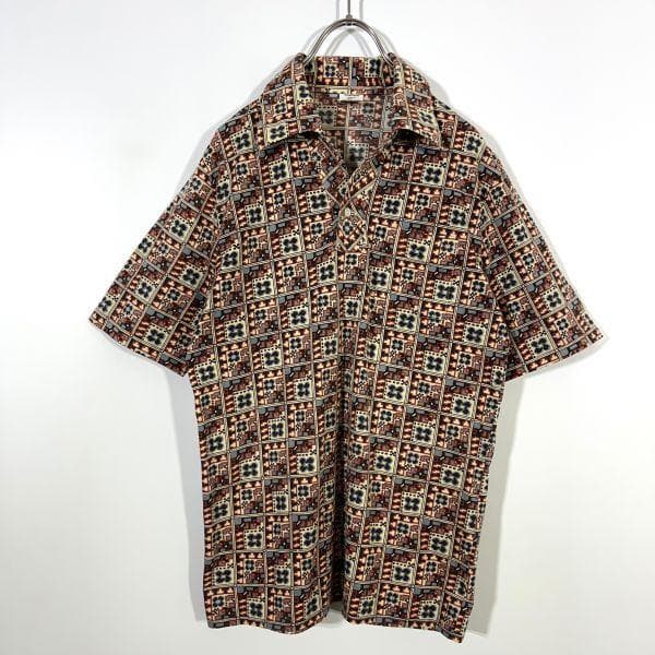 80s 90s レトロ古着 総柄 ポロシャツ Lサイズ オールド ヴィンテージ メンズ