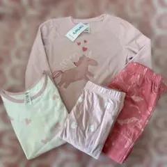 ユニコーンの刺繍が施されたミントグリーンのパジャマセット、快適なコットン素材でお子様に最適。