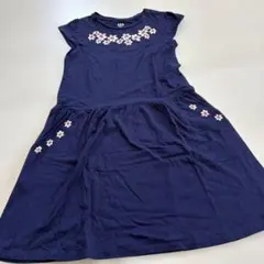 ネイビーの花柄デザインの半袖ワンピース、サイズ120。