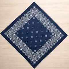 バンダナ ヴィンテージ オーナメント柄 クロス柄 ネイビー 大判