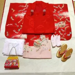 フルセット 髪飾り 足袋 草履 巾着 七五三 女の子 2歳 3歳 4歳 晴れ着 ハレの日 記念写真 記念撮影 美品