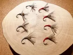 魁テンカラ毛鉤。逆さ毛鉤5本12#、カディス3本12#、アント3本13#、普通毛鉤風車3本14#の計14本になります。是非お試し下さい。ハンドメイドの為細部気になる方はご購入ご注意下さい。