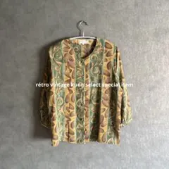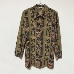 昭和レトロ花柄ブラウス 長袖シャツ 総柄シャツ ヴィンテージブラウス 大人古着