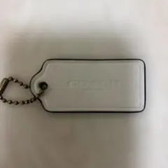 COACHのレザー製チャーム、ベージュのシンプルなデザインで、ボールチェーン付き。