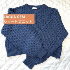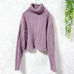 【美品】LAGUA GEM ラグアジェム【F】 ショート丈 リブニット パープル タートルネック