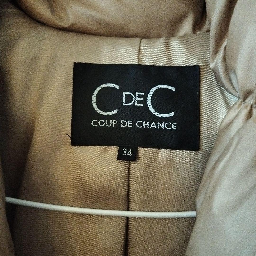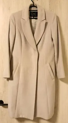 軽量で暖かいポリエステル製のロングコート、サイズ34。