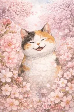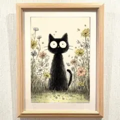 猫の絵 水彩画 お花...