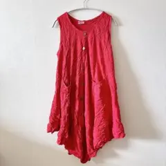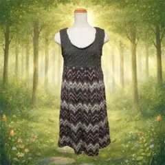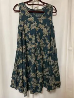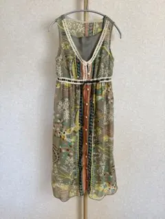 エスニック調のノースリーブのワンピースです。膝下です。後ろファスナーです。 お写真の通り粋なワンピースとなります。夏用ですが、秋になるとショートブーツにワンピースの上に羽織物をしましても、オシャレ感抜群です。