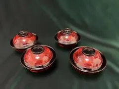 【未使用】吸物椀 5椀 高級漆器 木製 溜塗 見返し松葉 内朱 茶道具 茶懐石