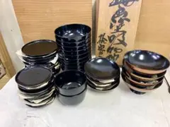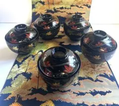 【未使用】特選 天然木 汁椀 5客 桜蒔絵 蓋裏見返り金彩 溜内黒 茶事 伝統工芸品