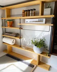 地震でも倒れない☆キッチンラックCentral4☆木目強調☆スパイスラック