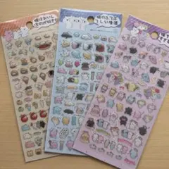 新品未開封 ぷっくり ぷくぷく 動物 食べ物 立体 シール 3種類セット