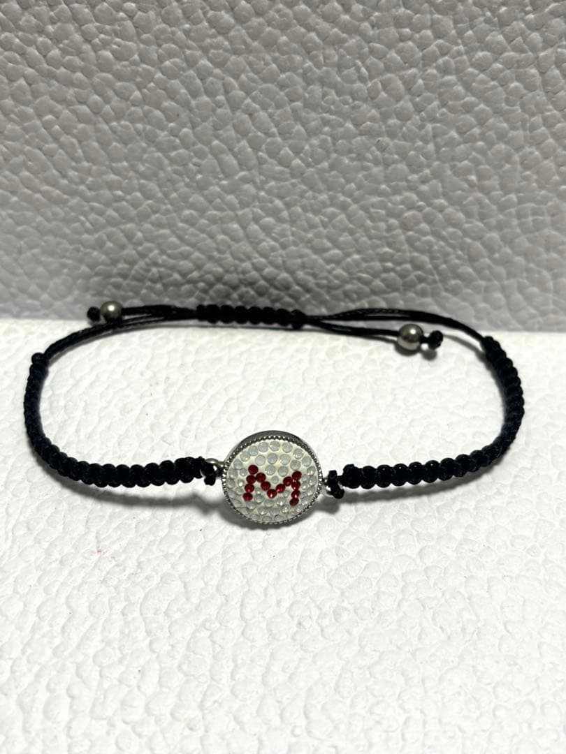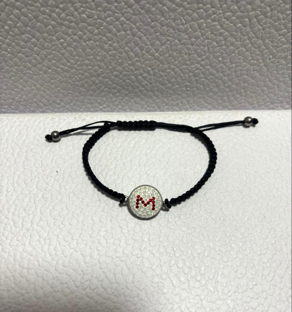 ホワイト(クリア)ストーンをベースに、レッドカラーの「M」イニシャルが映えるデザイン