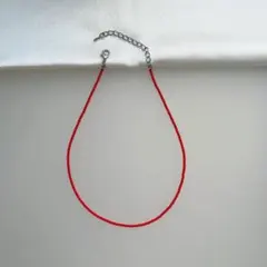 ダーククリアレッド×メタルシルバー丸小ビーズのネックレス♡