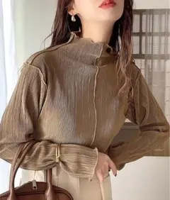 プリーツがしなやかな動きを創るシンプルながらも表情感あるハイネックプルオーバー。